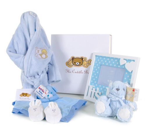 All of these gifts are wrapped in white tissue paper and lovingly packed into one of our sturdy, white Cuddle Boxes and tied closed with a white ribbon. Your personal message is on a small gift card inside the Cuddle Box. Your baby gift is hand delivered in the UK.