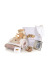 The same gift box can be purchased with the crinkle baby blanket in cream with the rabbit ears if you prefer in Cuddle Box called ‘Unisex Baby Gift Box G’.